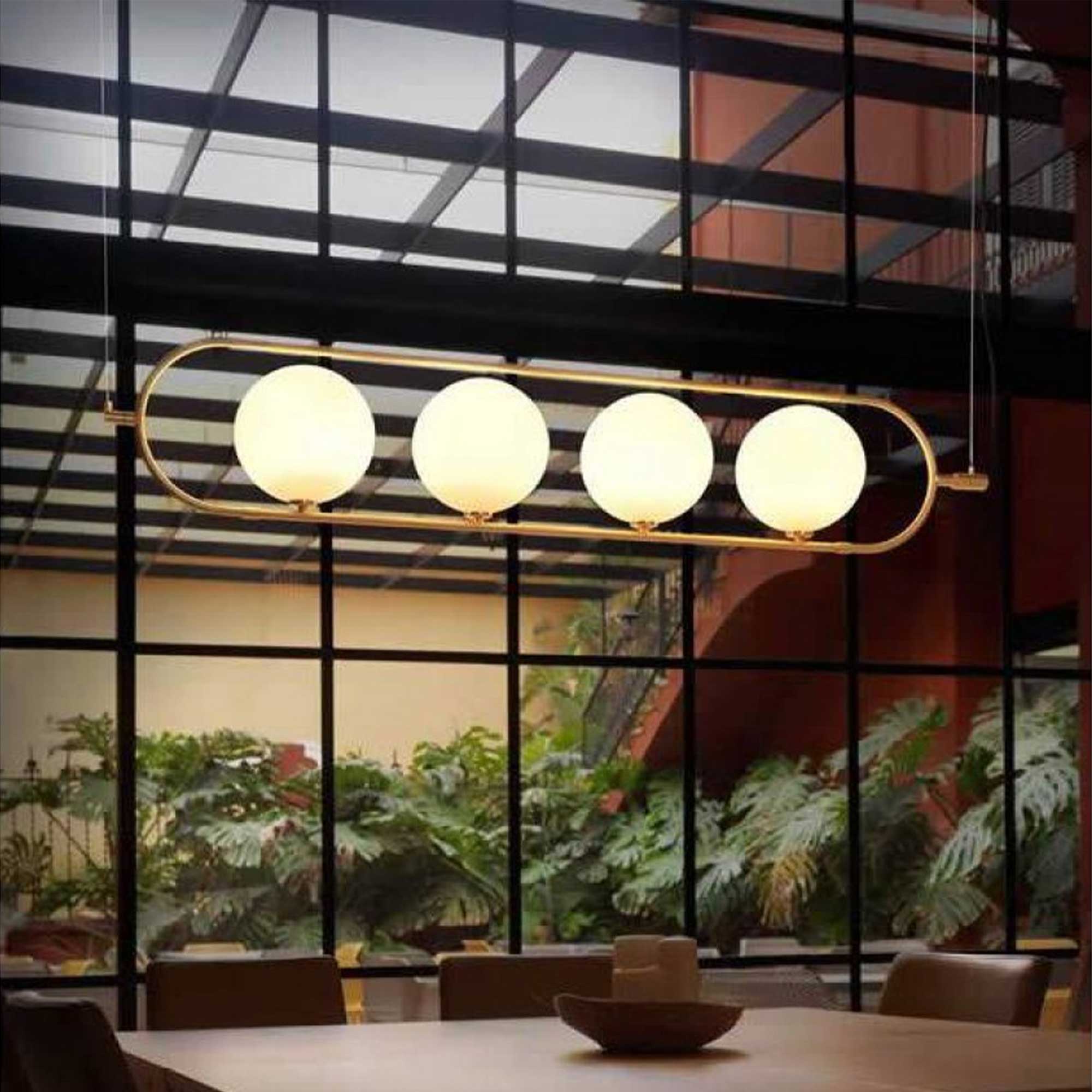 Závěsný lustr Abbacus od španělské značky Aromas del Campo vyniká elegantní zakřivenou kovovou konstrukcí a kulatými opálovými stínidly, která příjemně rozptylují světlo a vytvářejí harmonickou atmosféru. Lustr je ideální nad jídelními stoly nebo do jídelních koutů a nabízí vysokou flexibilitu díky možnosti nastavení výšky pomocí ocelových napínáků a samostatné připojovací základně, což je vhodné i pro nerovnoměrně rozmístěné světelné body. Konstrukce se dá otáčet kolem své osy, aby dokonale vyhovovala potřebám prostoru. Tělo svítidla je vyrobeno z oceli s povrchovou úpravou matná zlatá nebo matná černá, stínidla jsou z kvalitního opálového skla, které zajišťuje měkké, nepřímé osvětlení.