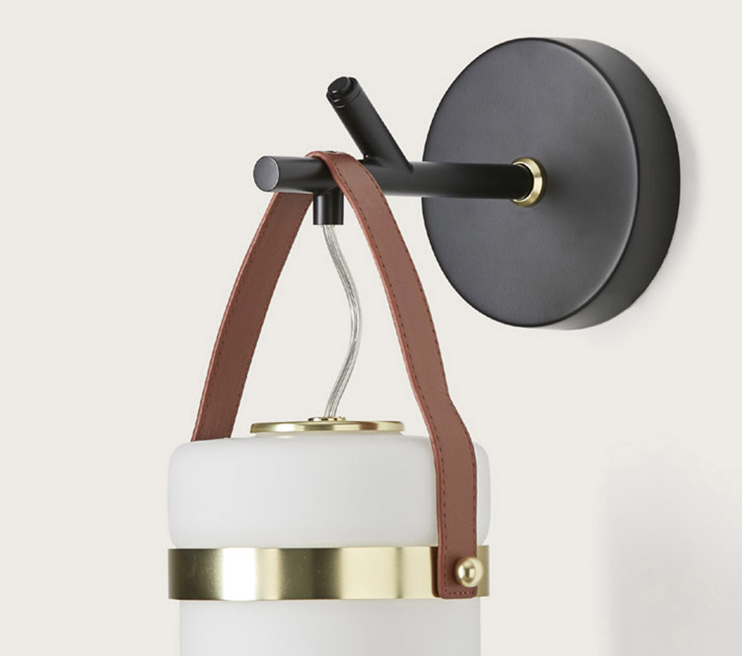 Nástěnné svítidlo Almon od renomovaného španělského výrobce Aromas Del Campo, jehož design navrhl talentovaný Pepe Fornas. Almon je designový klenot, který spojuje jednoduchost s elegancí, přinášející do vašeho prostoru neobyčejný estetický zážitek. Toto přisazené nástěnné svítidlo disponuje kvalitní kovovou základnou ve formě tenkého ramene, na kterém visí skleněný světelný prvek, zdobený koženým páskem a zlatým lemováním. Výsledkem je velmi elegantní a vkusné svítidlo, které zdůrazní jedinečný design vašeho interiéru. Almon je navržen pro žárovku G9, což umožňuje optimální výkon a možnost volby teploty barvy světla.