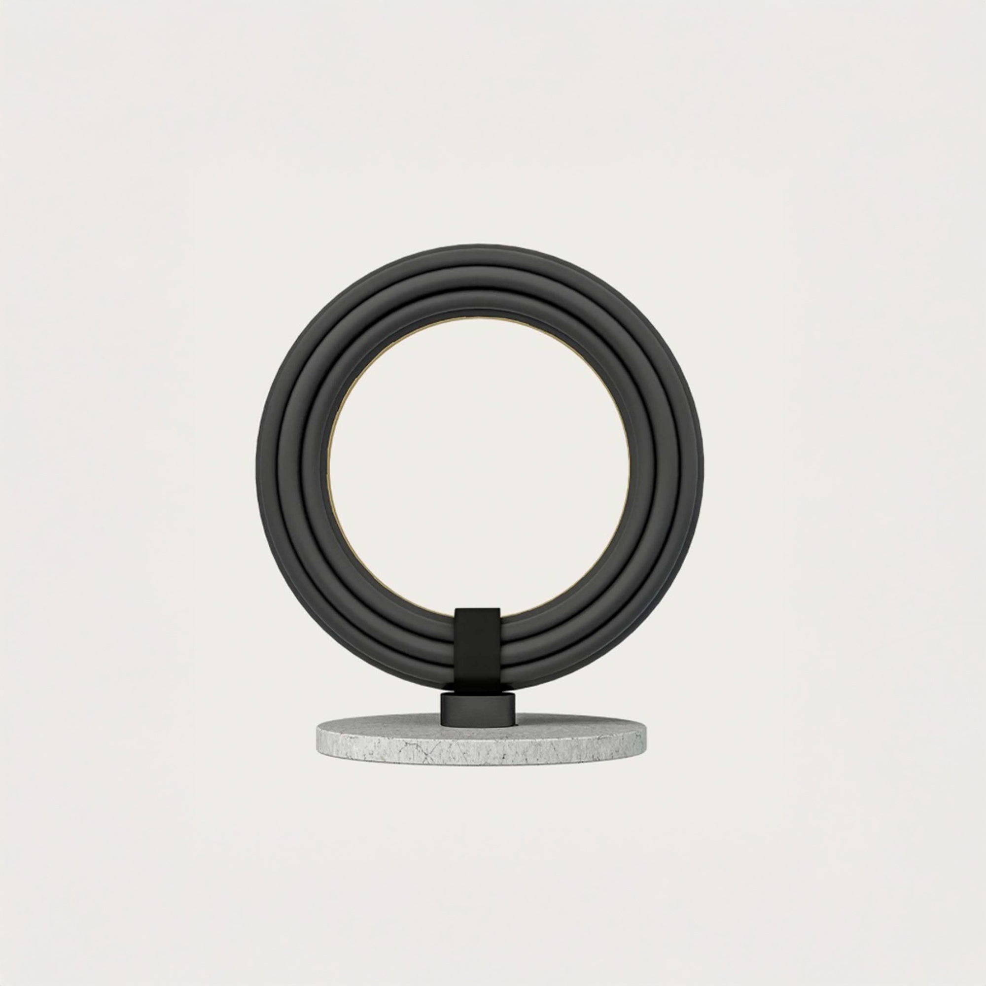 Stolní svítidlo Elli od Aromas del Campo, návrh JF Sevilla, přináší elegantní moderní pojetí klasické „prstencové“ lampy. Díky kombinaci mramoru a kovu působí jako nadčasový designový doplněk interiéru, zatímco nepřímé světlo vytváří teplou a příjemnou atmosféru. Svítidlo je stmívatelné přímo pomocí stmívače na kabelu a je dostupné ve dvou variantách: patinované zlato s bílým mramorovým podstavcem nebo matná černá s černým mramorovým podstavcem. Využívá 8W SMD LED s teplotou chromatičnosti 2700K a světelným tokem 720 lm, ideální pro obývací pokoj, ložnici nebo pracovní prostor.