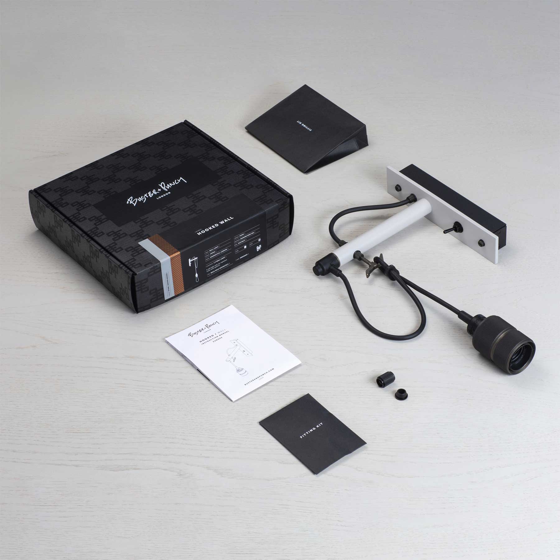 Nástěnné svítidlo Hooked, od londýnského designéra a výrobce Buster & Punch, z kovu s kamenným povrchem a ocelovými detaily vyniká moderním industriálním designem. Je doplněna ikonickým přívěskem z plné oceli s křížovým vroubkováním a matně černými gumovými prvky, který je upevněn na pevném ocelovém háčku. Ten umožňuje snadné zavěšení a nastavení délky kabelu podle vašich preferencí. Svítidlo je určeno pro žárovky s paticí E27, přičemž doporučujeme použít právě žárovky od Buster & Punch (žárovka není součást balení), které dokonale ladí s designem a atmosférou svítidla. Svítidlo nabízí flexibilní instalaci – lze ji připojit přímo do elektrické instalace ve zdi nebo ji opatřit povrchovým kabelem se zástrčkou (kabel není součástí balení) pro jednoduché připojení do zásuvky. Perfektní volba pro ty, kteří hledají nadčasový kousek, jenž dodá interiéru moderní a elegantní nádech.