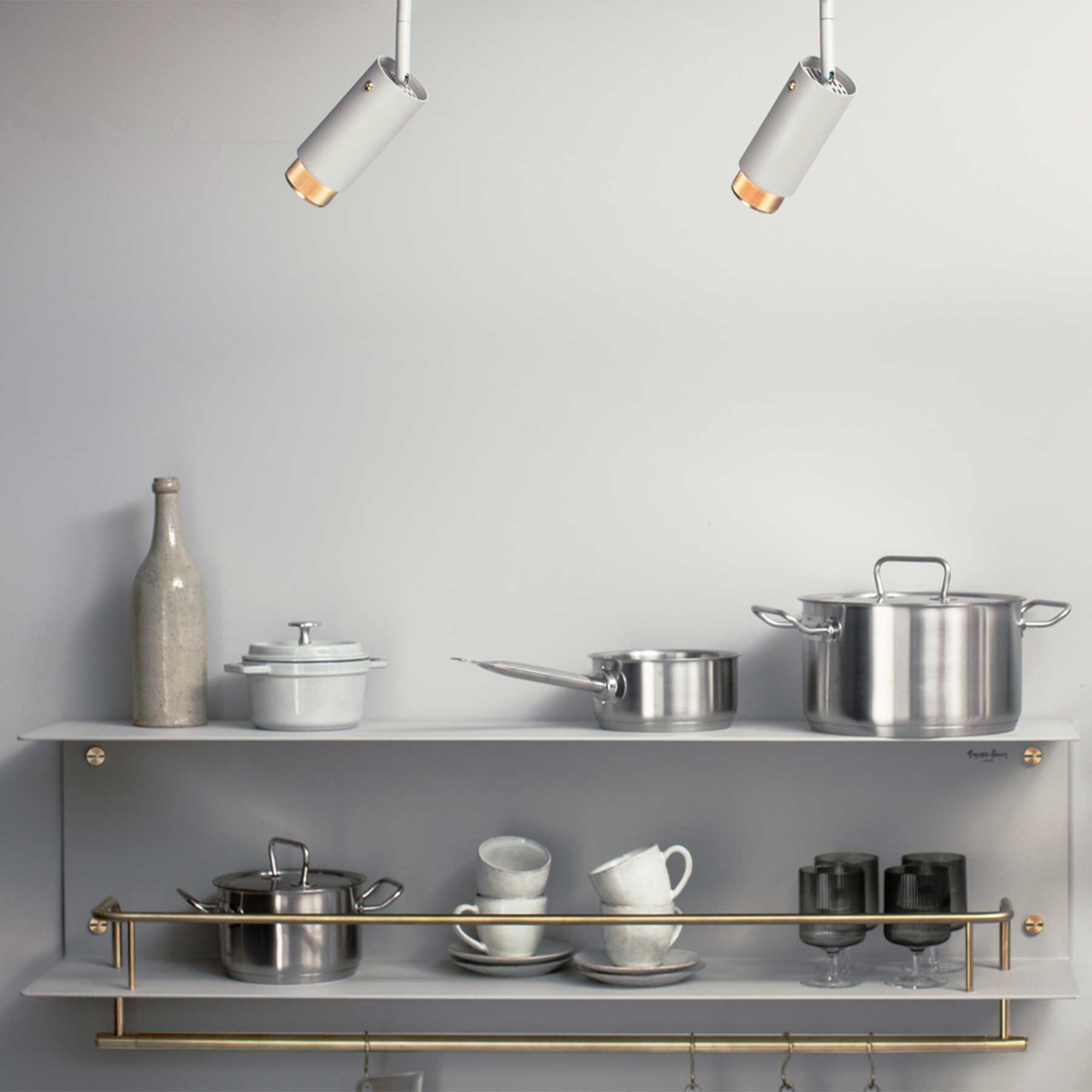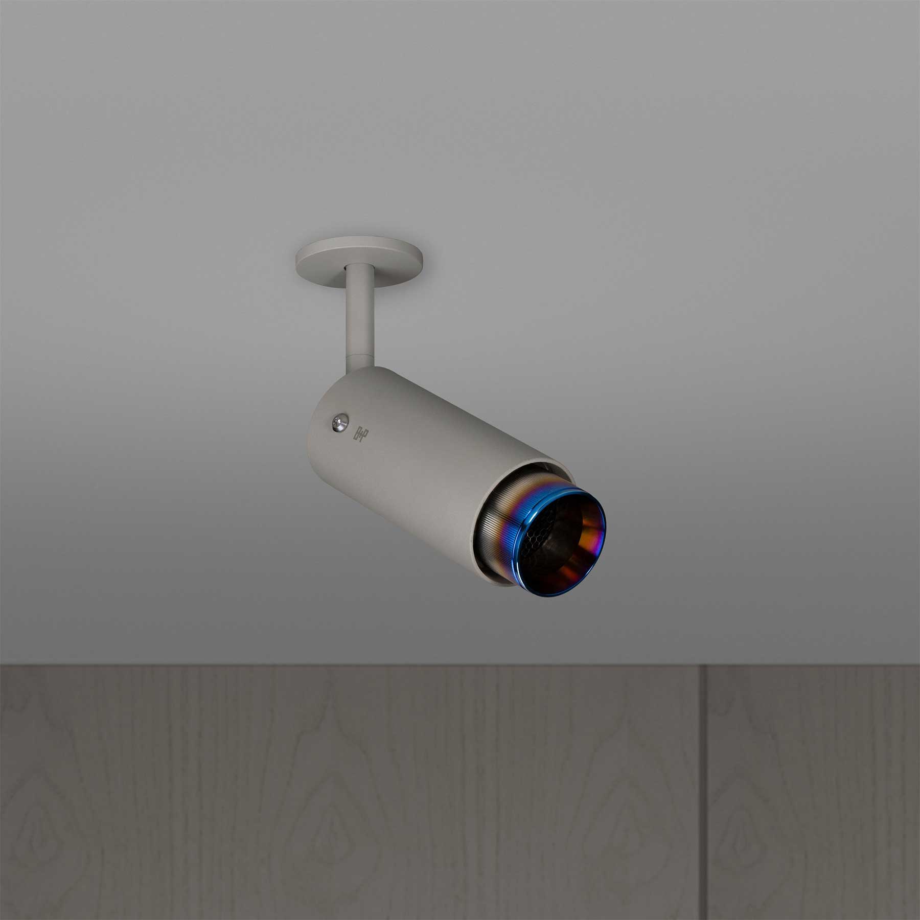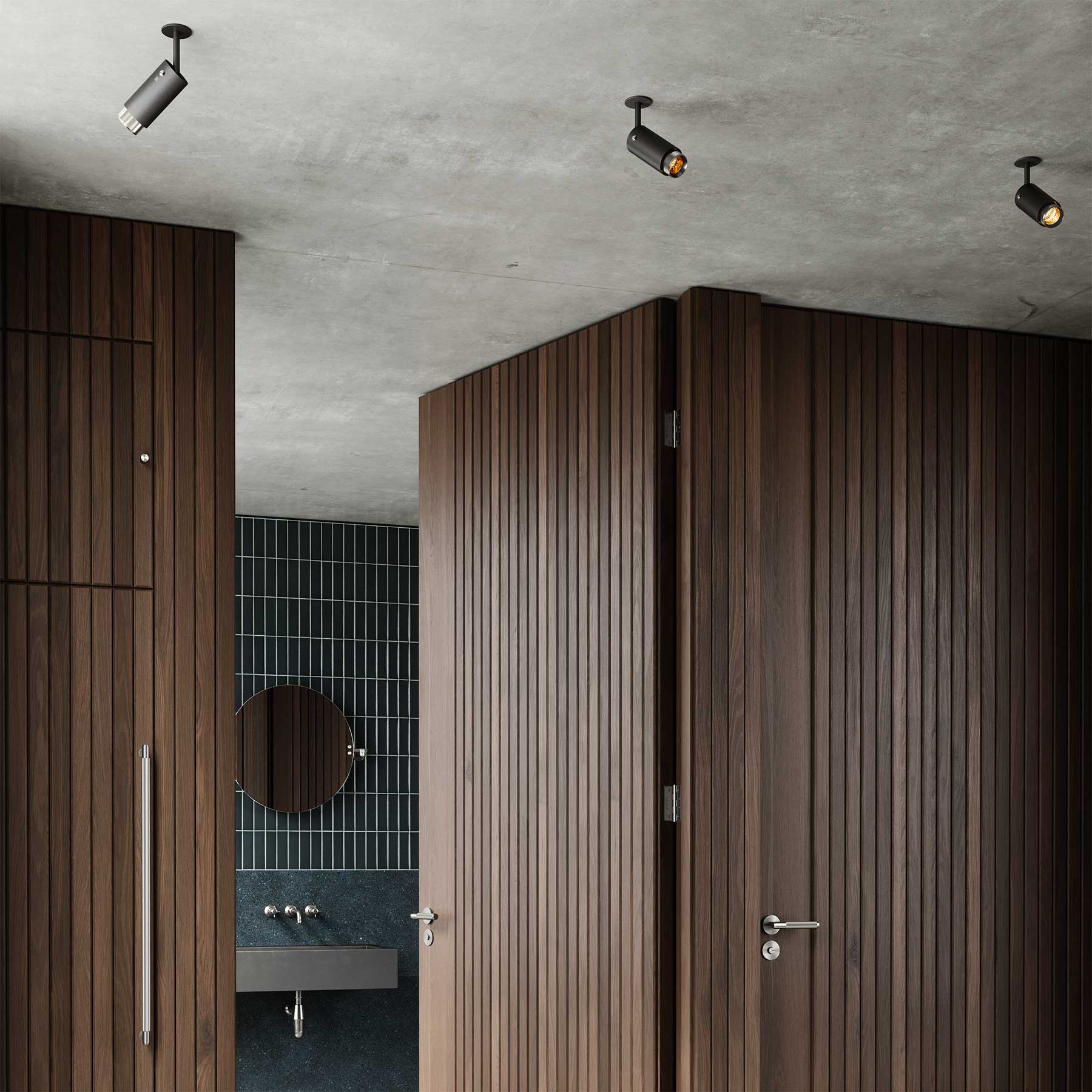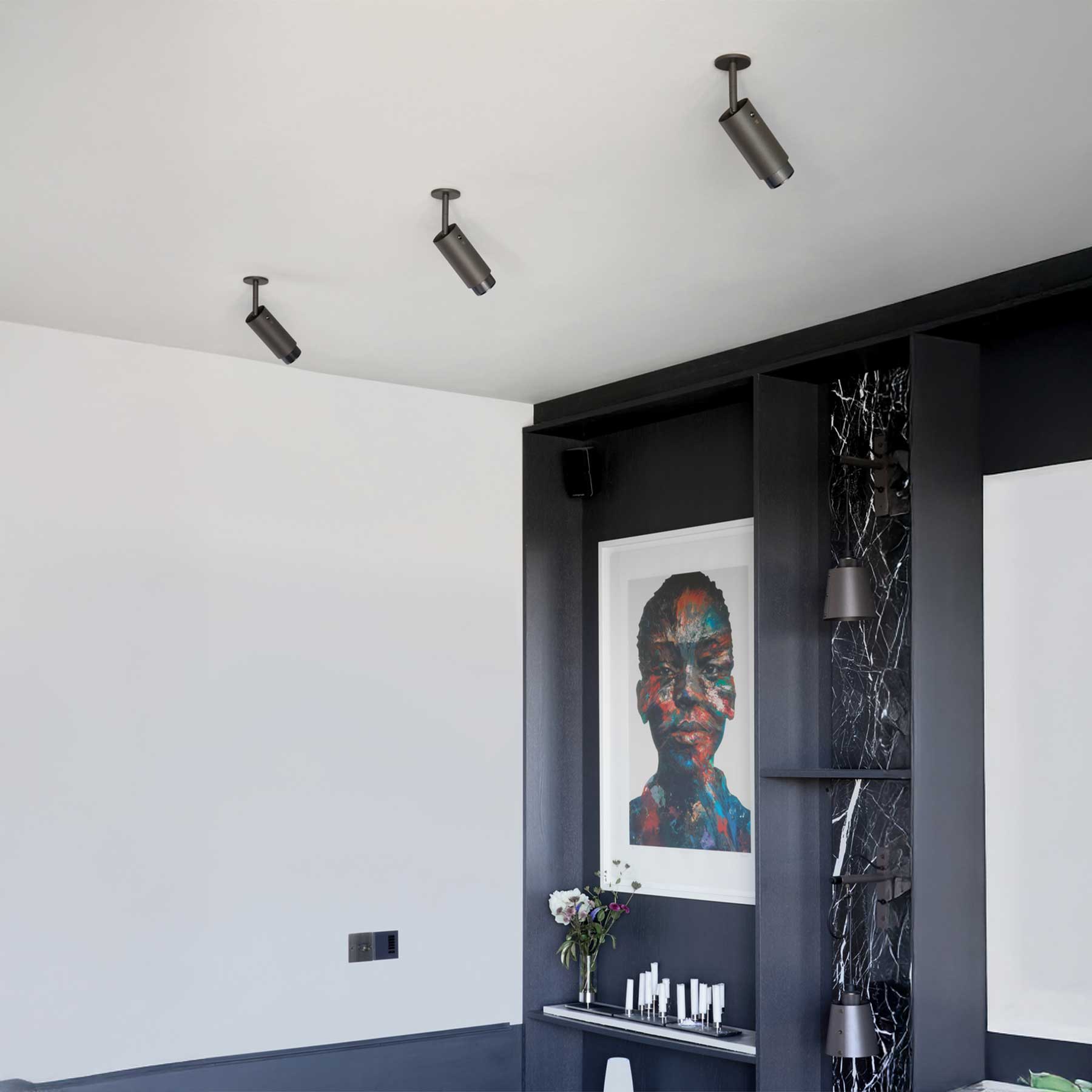 Nastavitelný bodový reflektor, od londýnské značky Buster & Punch, vyrobený z kovu s povrchovou úpravou z kamenného/grafitového prášku a doplněný o detaily z masivní oceli. Clona zachycuje světlo a vytváří jemný kovový lesk, zatímco honeycomb filtr zajišťuje přesné, neoslňující a směrové světlo. Reflektor je dále vybaven šrouby s Torx hlavou z masivní nerezové oceli. Reflektor je plně nastavitelný, dodává se s vestavěným stropním baldachýnem a je kompatibilní s žárovkami GU10. Součástí balení je také prodlužovací baldachýn v odpovídajícím kamenném/grafitovém kovovém provedení, která umožňuje instalaci na viditelné kabelové vedení.