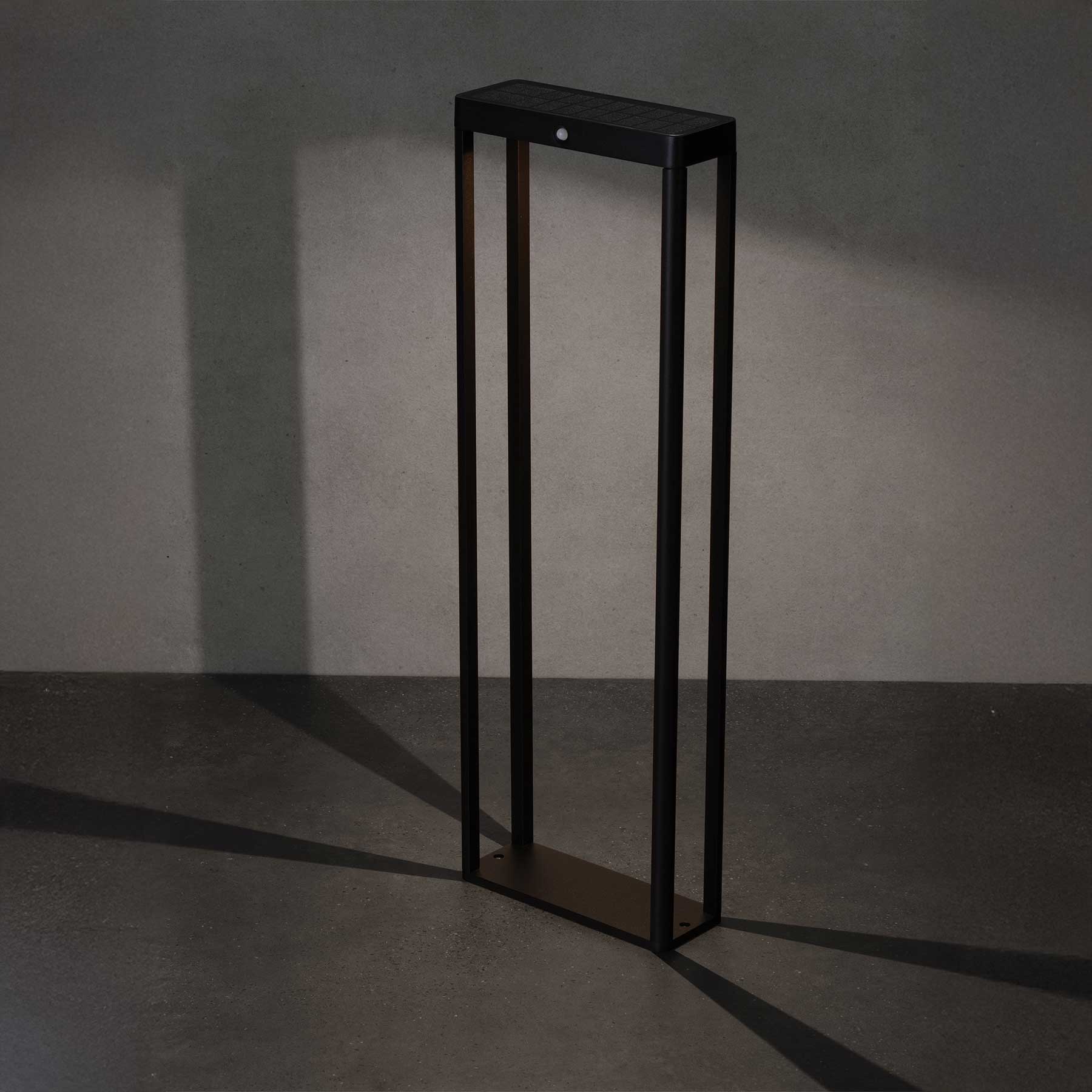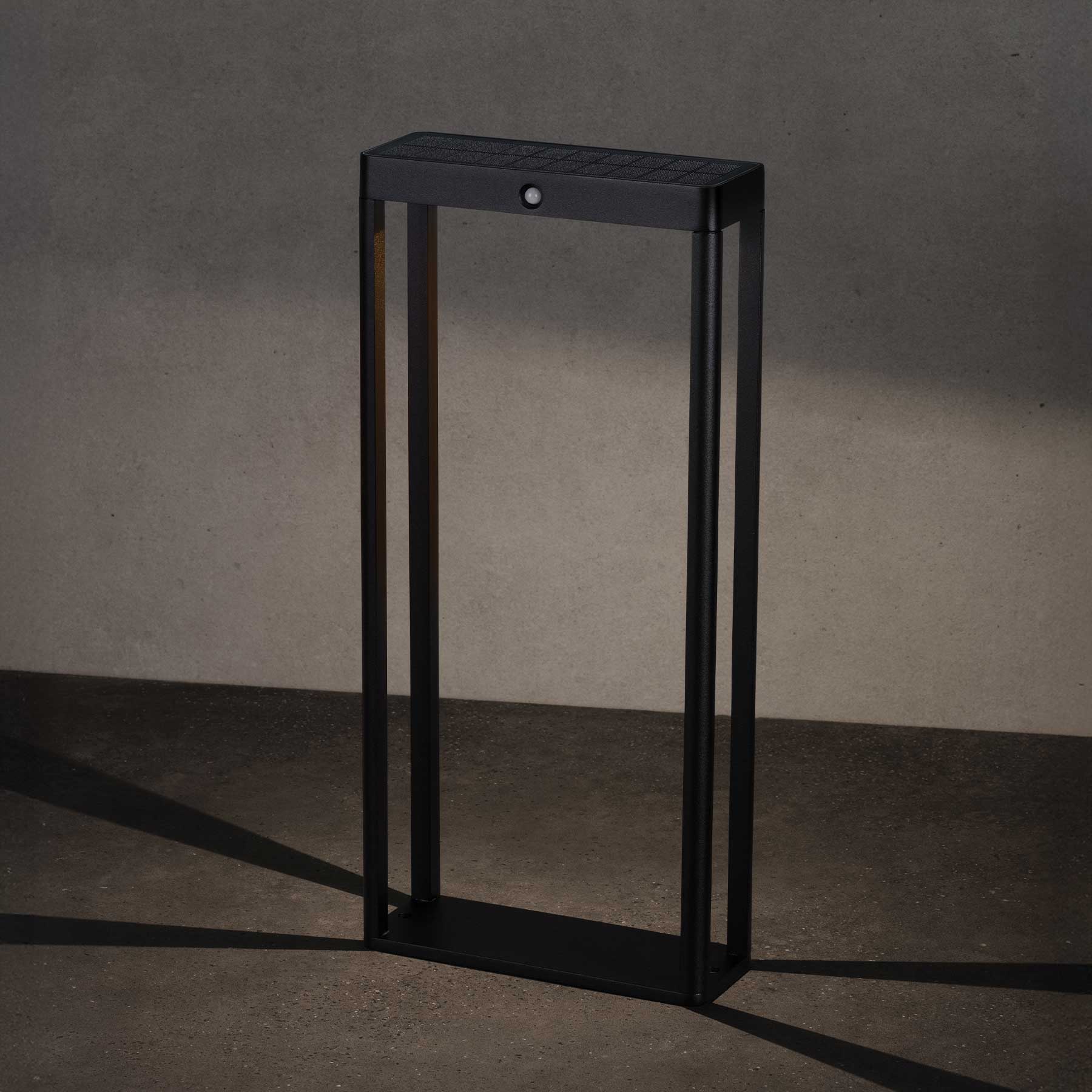 Sloupkové svítidlo Berni od společnosti Nova Luce je moderní venkovní osvětlení z hliníku s černou povrchovou úpravou a klecovým designem doplněným čirými skly, které rovnoměrně rozptylují teplé LED světlo o teplotě 3000K a vytváří unikátní hru světla a stínů, čímž dodává prostoru atmosférický nádech. Svítidlo je vybaveno solárním nabíjením, což zajišťuje energetickou soběstačnost a snadnou instalaci, a pohybovým senzorem, který automaticky rozsvítí světlo při detekci pohybu, aniž by narušoval jeho elegantní vzhled. Díky kombinaci odolného materiálu, moderního designu a chytrých funkcí je Berni ideální pro osvětlení zahrad, chodníků, vchodů nebo teras.