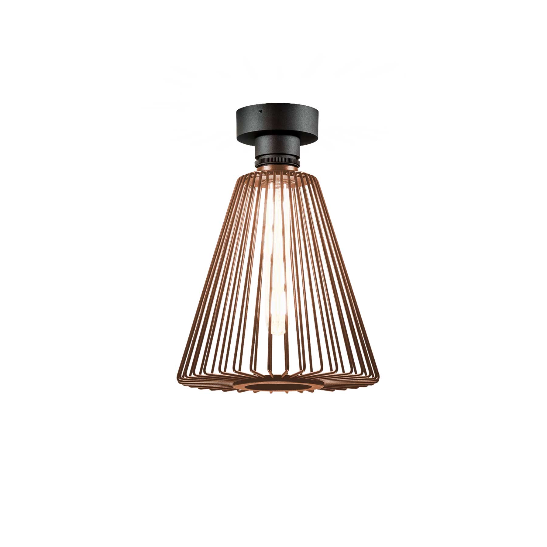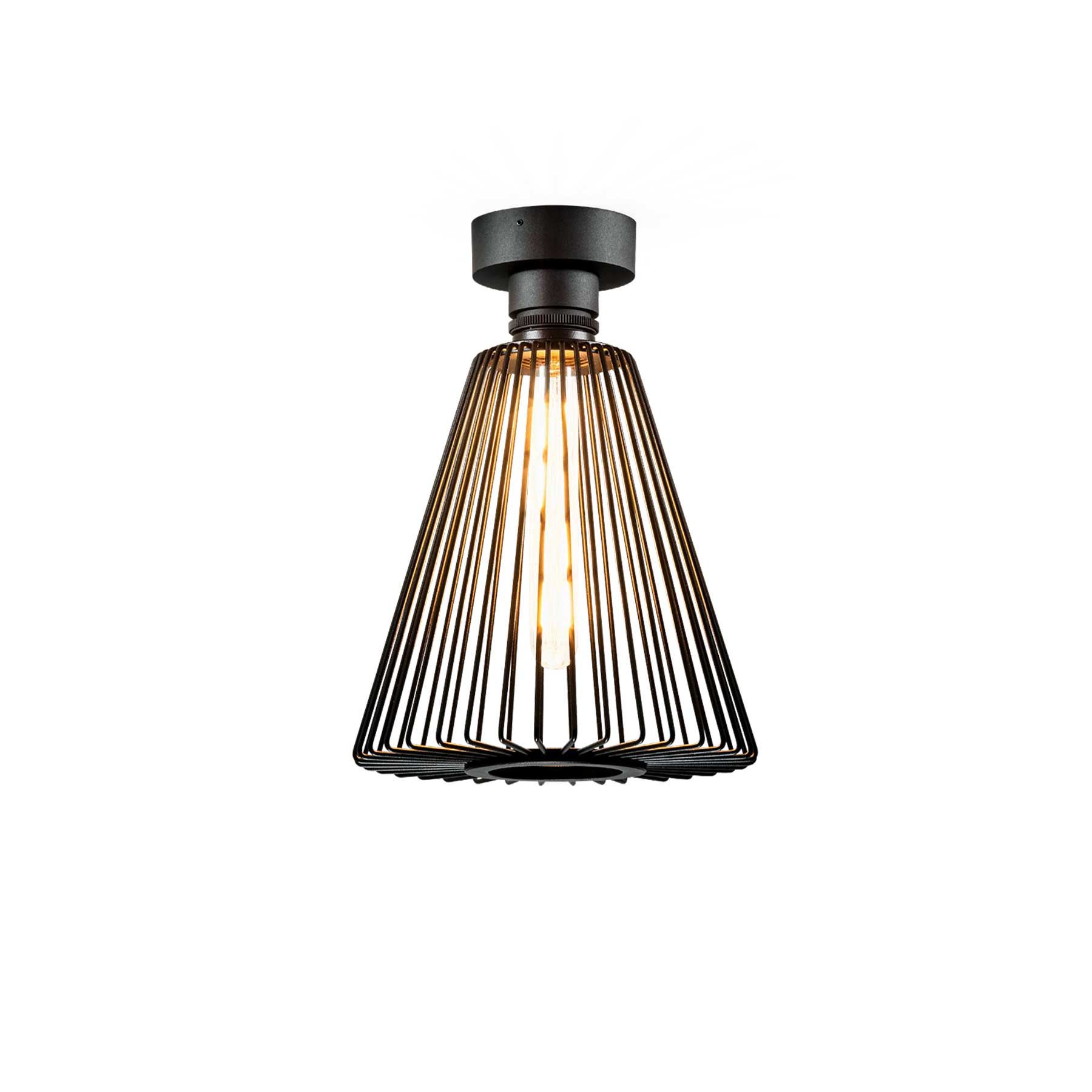 Přisazené stropní svítidlo z kolekce WIRO od belgické značky Wever & Ducré je designový prvek s industriálním charakterem, tvořený pevnými ocelovými dráty, které vytváří výraznou hru světla a stínu. Svítidlo je určené pro žárovky s paticí E27 a je dostupné v několika typových variantách, které se liší velikostí a tvarem drátěného stínidla, což umožňuje jeho využití v různých typech interiérů. Na výběr jsou dvě povrchové úpravy – černá a rezavá lakovaná ocel – které podtrhují jeho surovou eleganci a dodávají prostoru jedinečný styl.